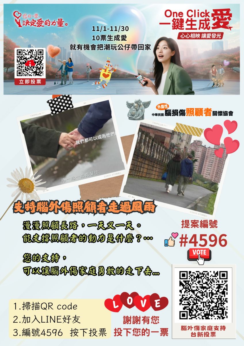 成為照顧者,往往是在毫無準備的情況下接下這份沉重又艱難的責任。這些默默付出的「隱形天使」們,需要的不僅是堅韌的意志,更渴望來自社會的支持與關懷。而我們的「隱形天使—腦外傷照顧者關懷專案」正是為了這些家庭而設,期待每一位善心人士的支持,讓關懷得以延續,愛心得以傳遞。您的定期定額捐款,將為這些家庭注入更多的力量與希望。