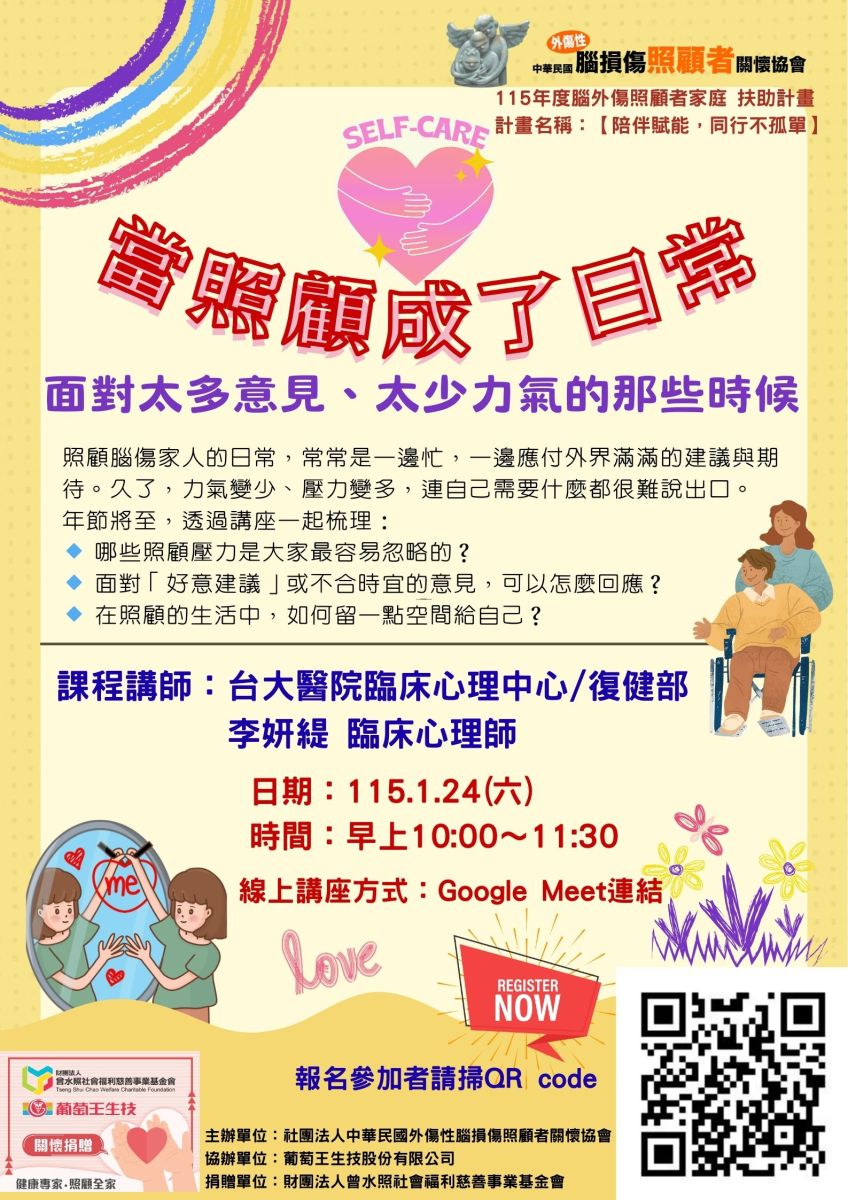 歡迎大家(腦外傷照顧者、傷者及其家人)一同來交流!