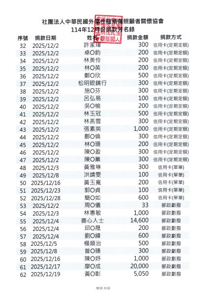捐款芳名錄查詢連結:https://cougar.eoffering.org.tw/contents/lover