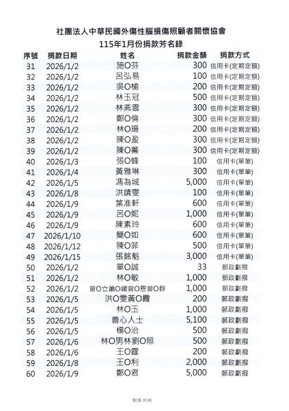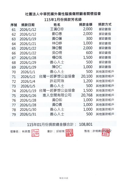115年1月份愛心芳名錄公告